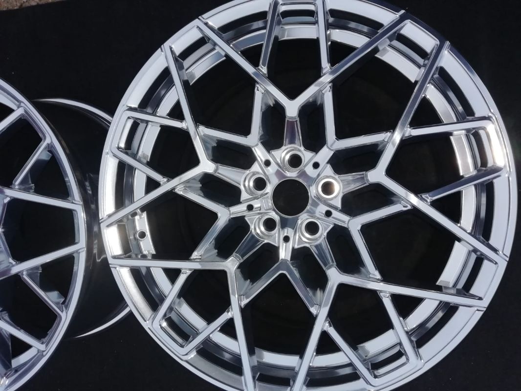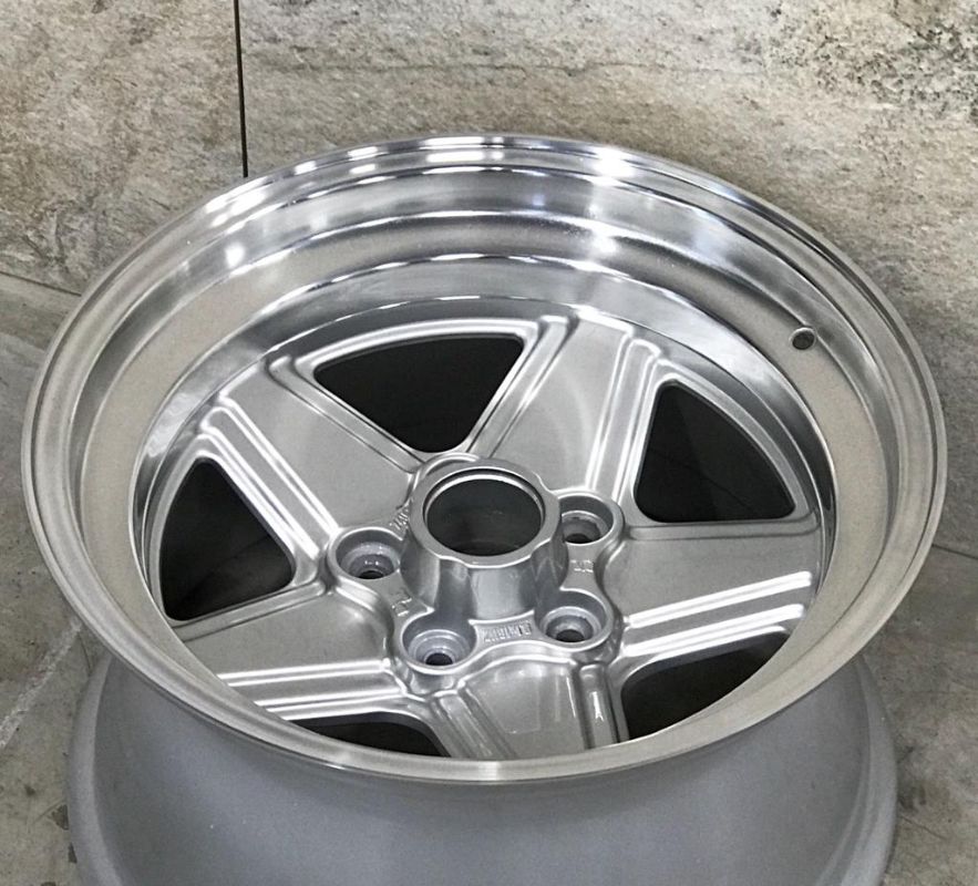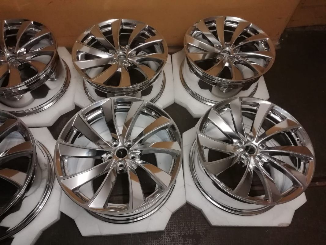 Die sehr fein vorgeschliffene Leichtmetallfelge wird mit Hilfe keramischer Polierkörper in mehrstündiger Behandlung hochglanzverdichtet. Die Oberfläche der Teile wird durch die harten Keramikkörper verdichtet, geglättet und dadurch auf Hochglanz gebracht.