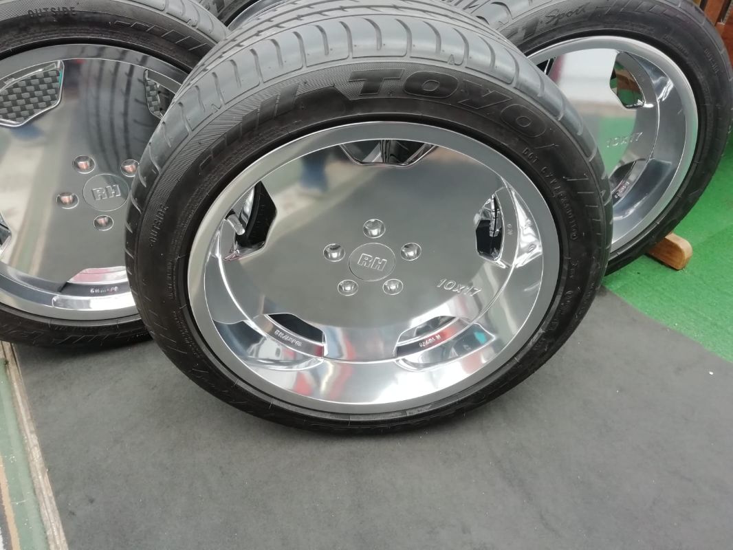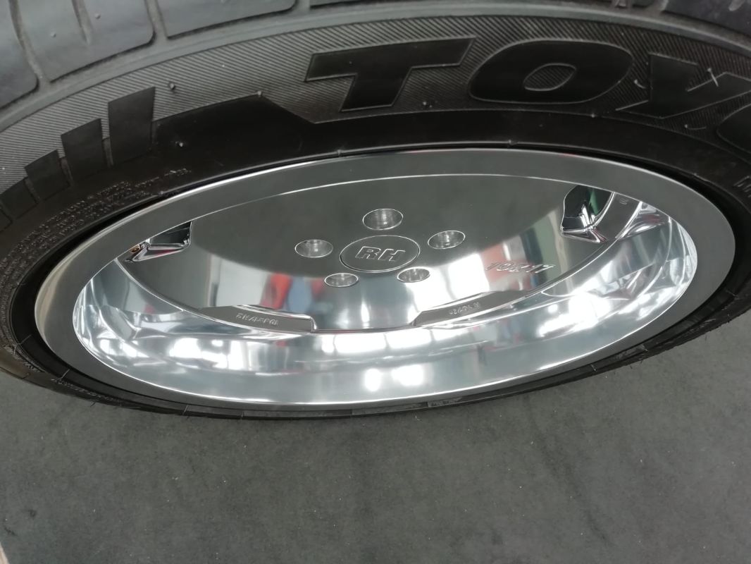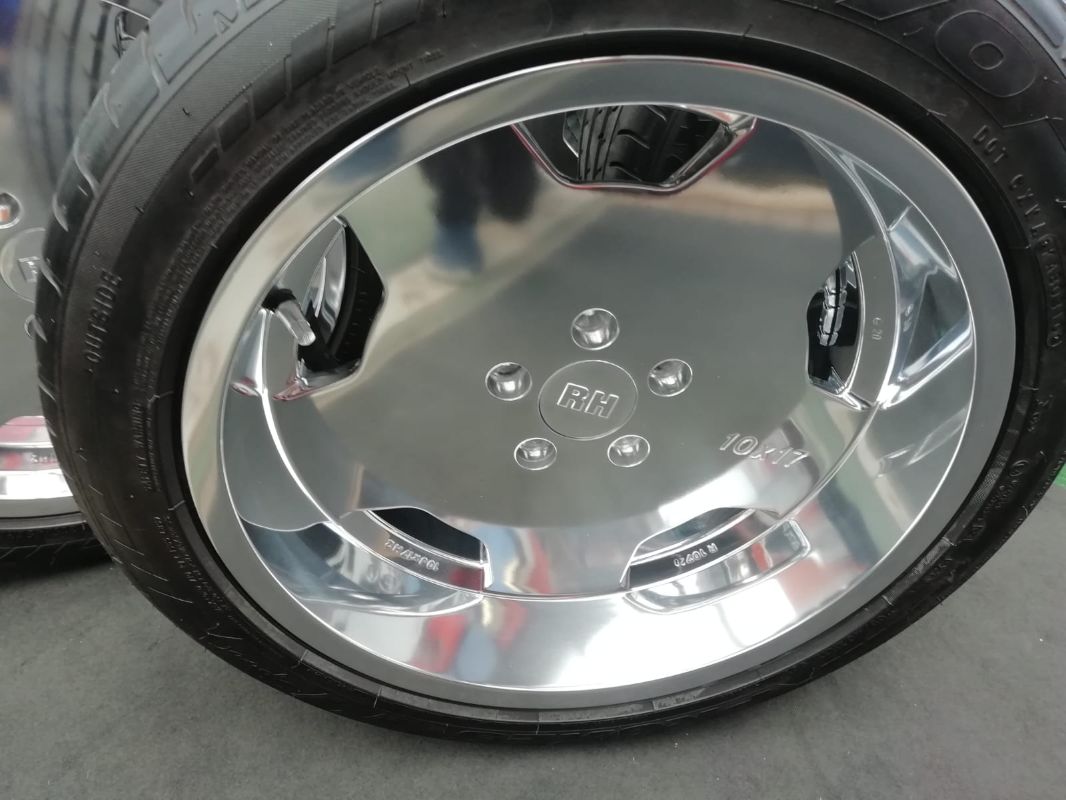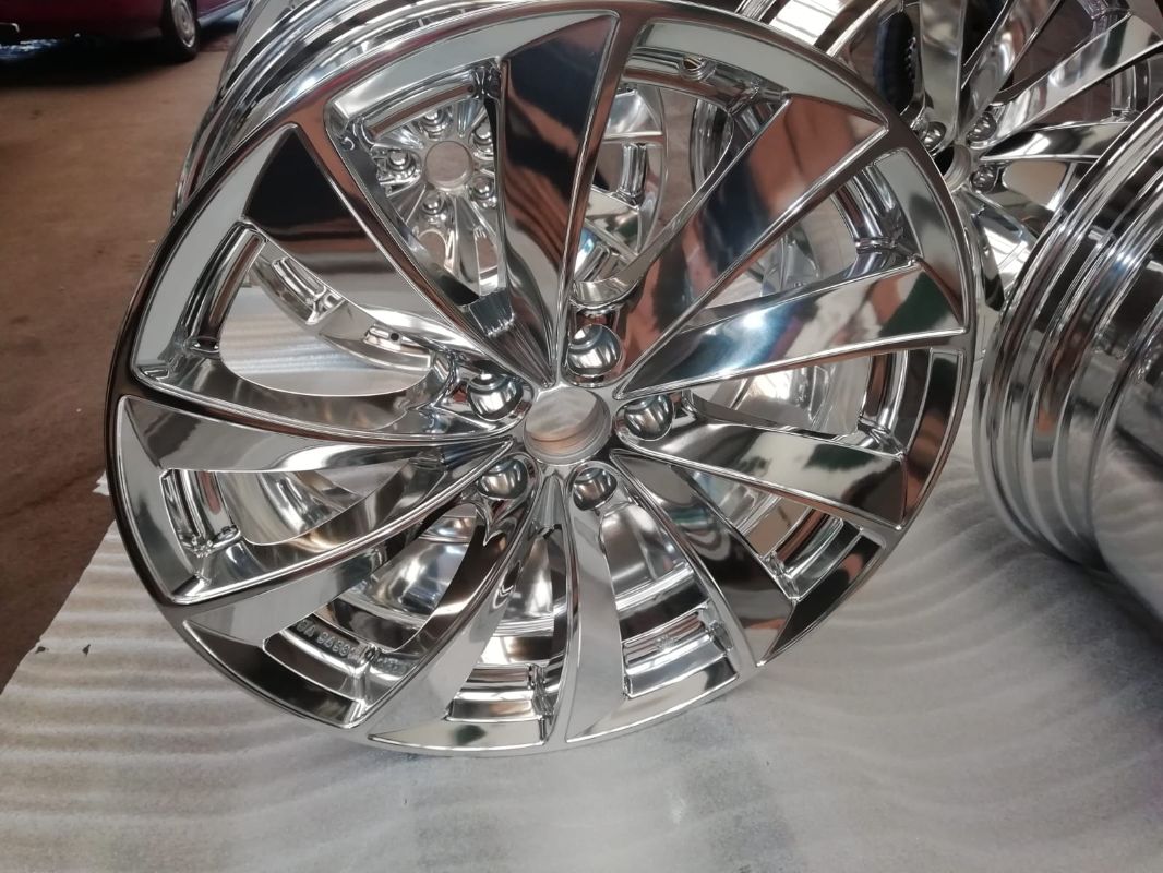 Sie können sich das vorstellen als ob tausende winzige Hämmerchen auf die Felgenoberfläche aufschlagen bzw. daran reiben und diese durch ihr Gewicht und die dynamische Bewegung verdichten. Es entsteht die typische Chrom-ähnliche Optik. Durch verschiedene so genannte Compounds wird das Aluminium aufgehellt, extrem geglättet und geschützt vor korrosiven Angriffen.