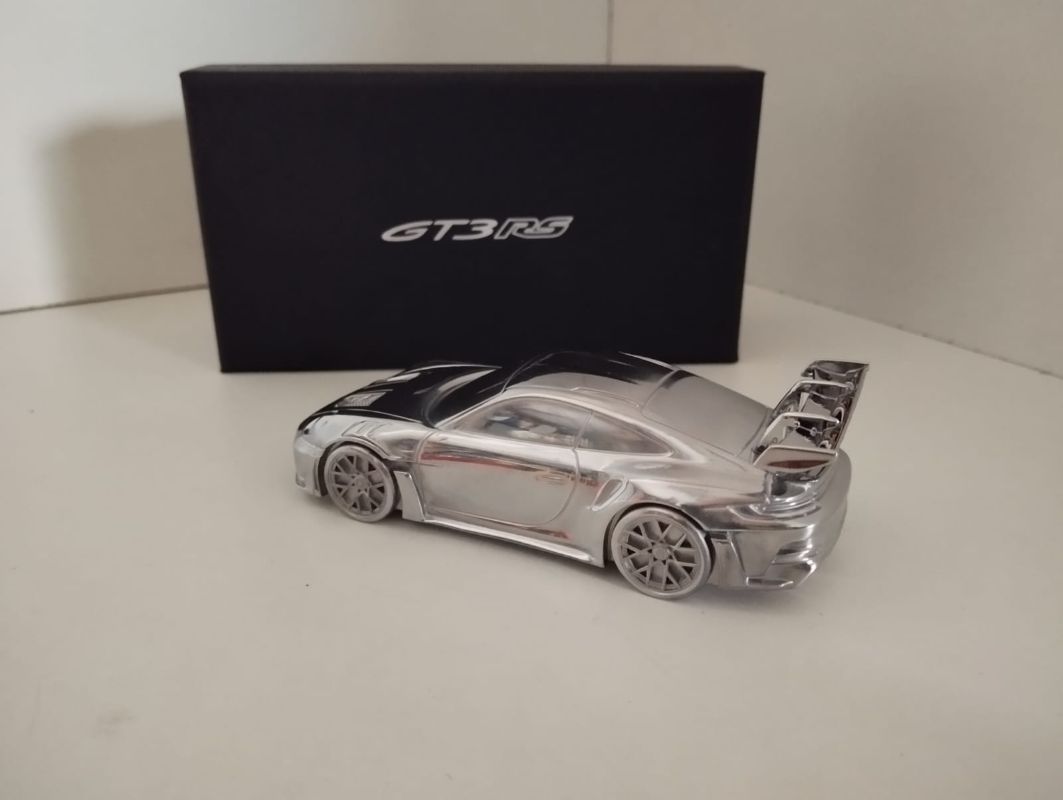 Dieses edle Schmuckstück ist im Maßstab 1:43 aus einem Stück Aluminium gefertigt (Gewicht: circa 300 Gramm, modellabhängig). Zur Auswahl stehen verschiedene Porsche Modelle (beispielsweise Porsche 911 Turbo Typ 991, Porsche 918 Spyder, Porsche 911 992 GT3 RS, Porsche Macan, Porsche Panamera, Porsche Cayenne, …) — und ja, diesen Artikel bekommen Sie natürlich aus verschiedensten Quellen, auch und vor allem im Internet - klar. ;-)